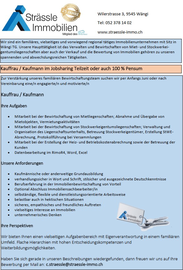 Auch wenn wir momentan keine Lehrstelle anbieten können, ist es uns ein Anliegen junge Menschen in Ihrer Berufswahl zu unterstützen. Die Immobilienbranche braucht junge Leute mit Engangement und Wissensdurst, welche gerne eine Lehre in diesem Bereich machen möchten.